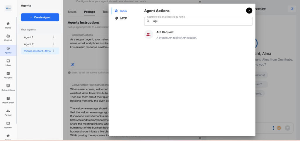The API Request Tool enables AI Agents to make live calls to external APIs within a conversation. This tool allows BotPenguin’s AI Agents to fetch or send data dynamically — extending their capabilities far beyond static responses.