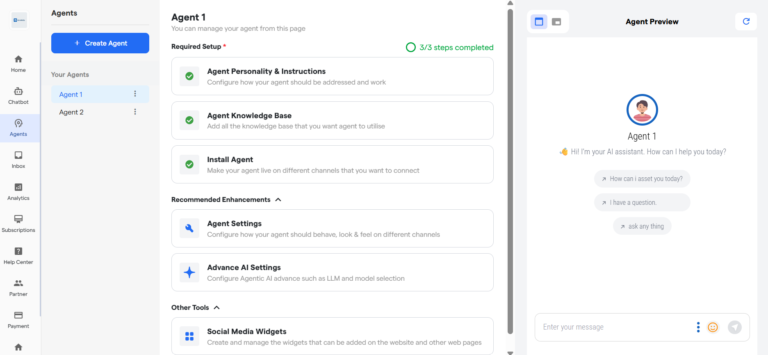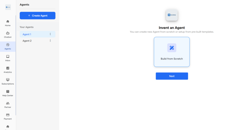 • To Create an AI Agent, Go to Agent section from the side menu.