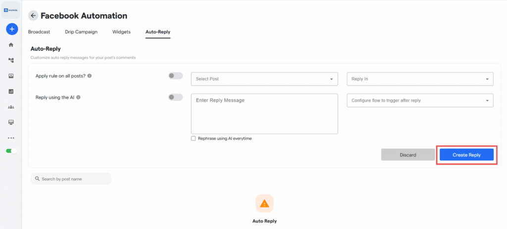 Select Post: Choose the specific post you want to activate Auto Reply on. You can also click on the “Apply rule on all posts” to put the automation on all posts.