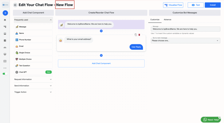 With the option to create multiple flows in your website chatbot, you can easily connect different flows using the redirect component. Here’s how to set it up: