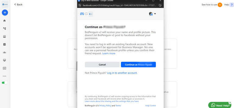 - It will open up a new pop-up window where you have to complete the Meta onboarding.