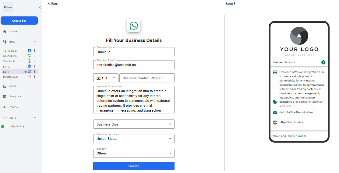 Step 2: Create a WhatsApp bot & go through the WhatsApp Automated onboarding process