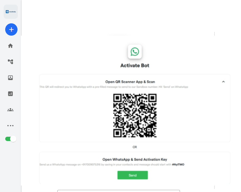 Scan the QR Code and initiate a WhatsApp message to create the demo bot 1st. Scan or Send Confirmation message