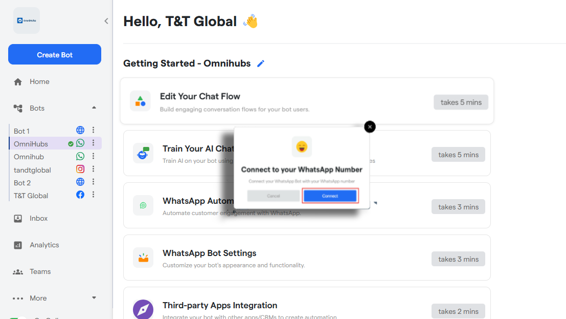 Here is the process to create the WhatsApp Bot using the Omnihub’s Automated onboarding.